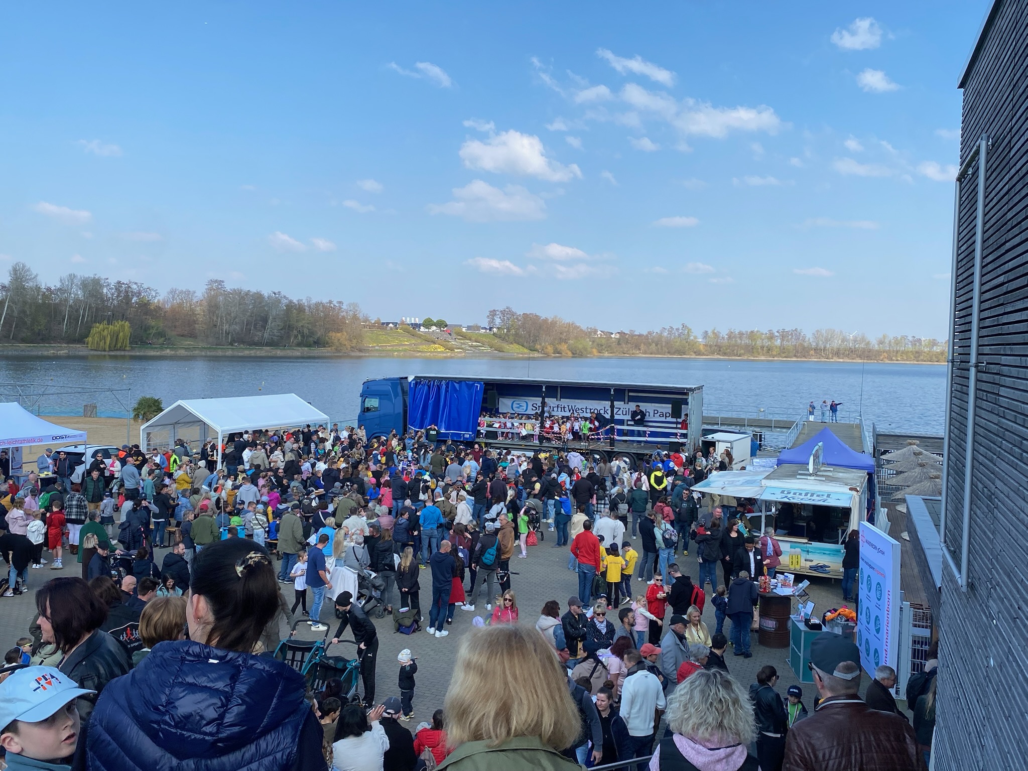 Abgerundet wurde das sportliche Programm durch den parallel stattfindenden Tag der offenen Tür im Seepark, der auch für Familien und Besucher einiges zu bieten hatte. So konnten sich Kinder auf dem Hüpfkissen, dem Kletterberg, den Hüpfburgen und dem Flying Fox austoben, während ein liebevoll gestaltetes Kinderschminken für zusätzliche Freude bei den jüngsten Gästen sorgte. Währenddessen genossen die Erwachsenen die besondere Atmosphäre des Parks mit Blick auf den Zülpicher See. Insgesamt zog es an diesem Tag rund 6.600 Gäste in den Seepark, darunter knapp 1.200 Läuferinnen und Läufer.
