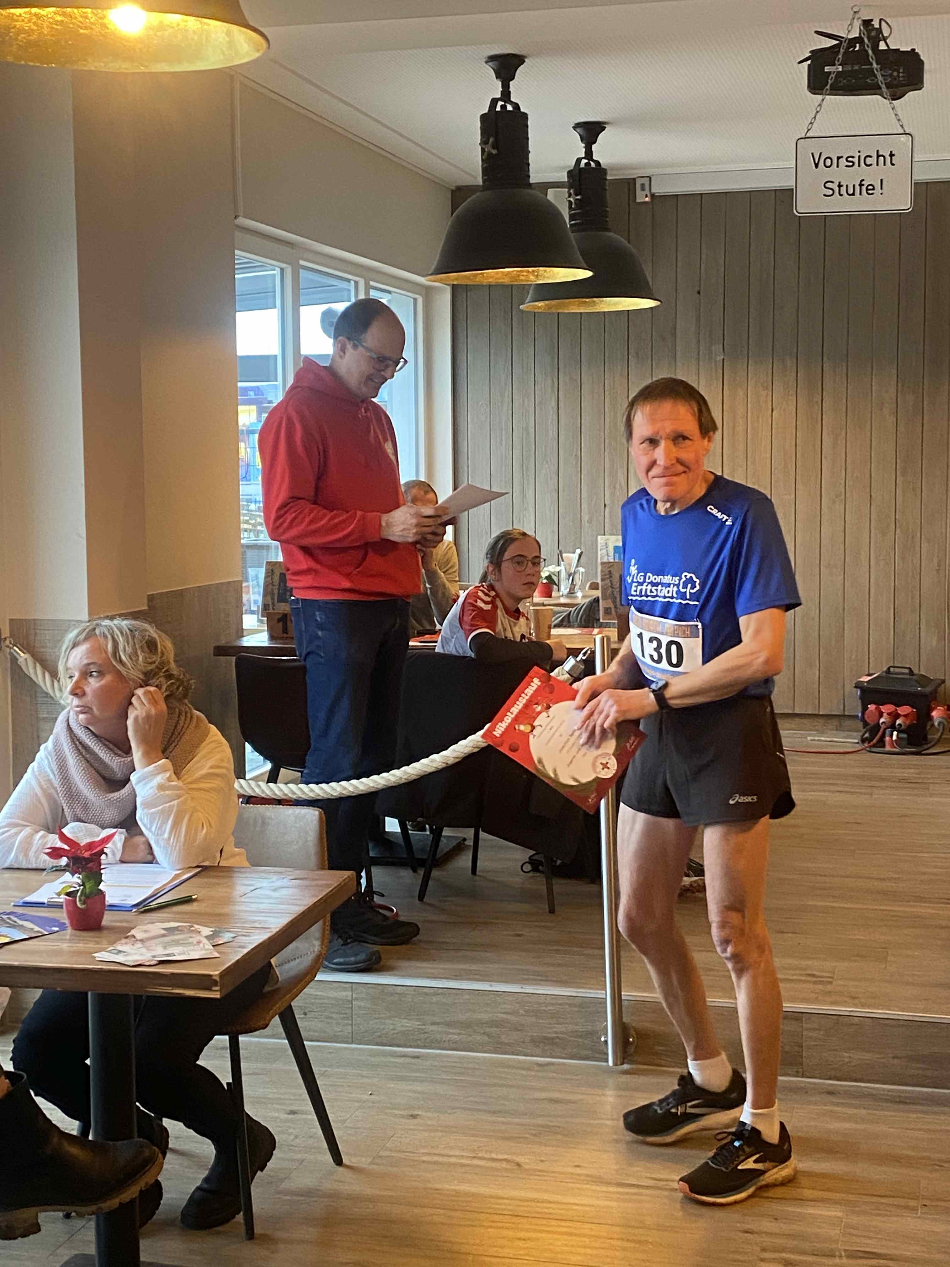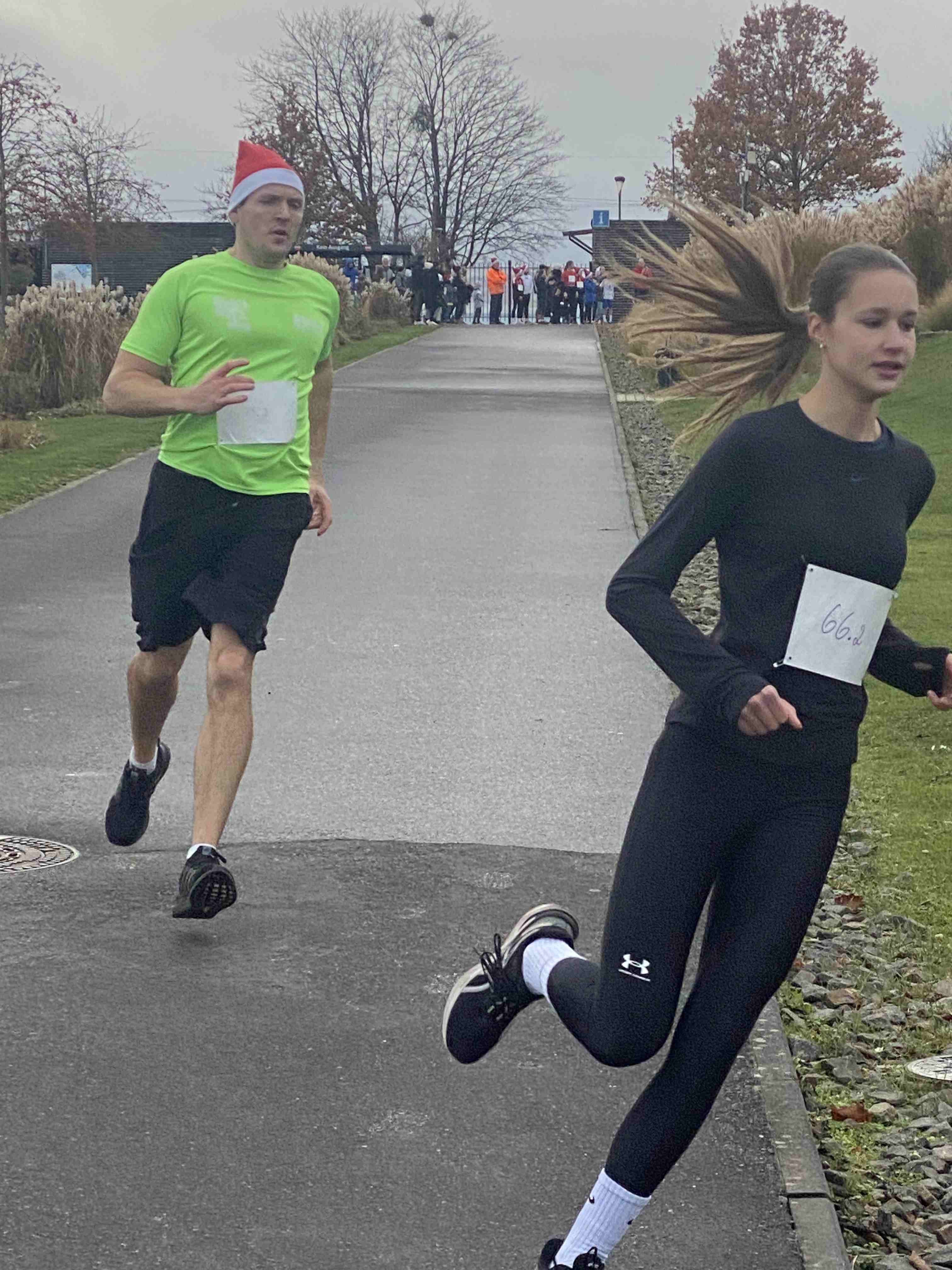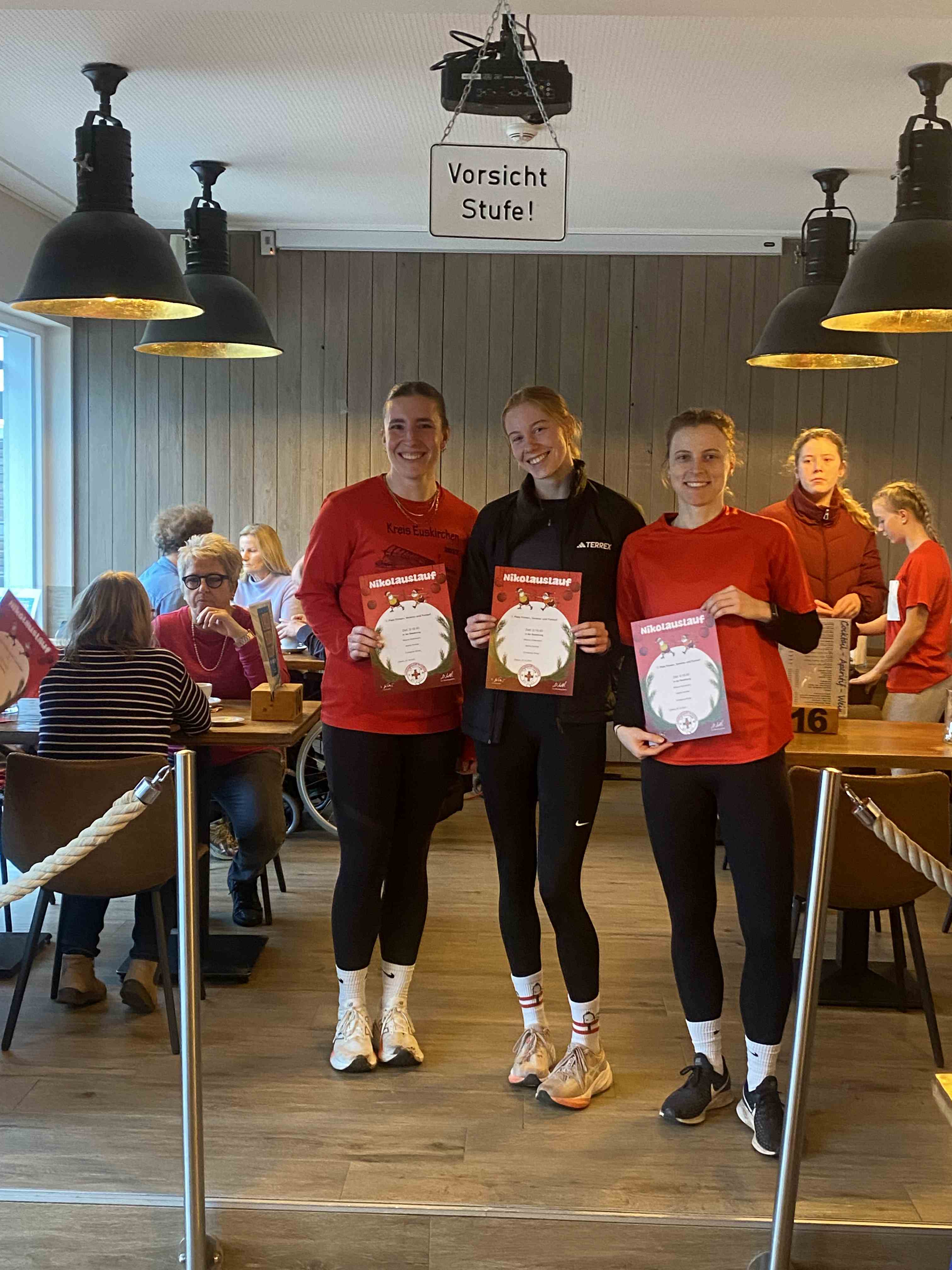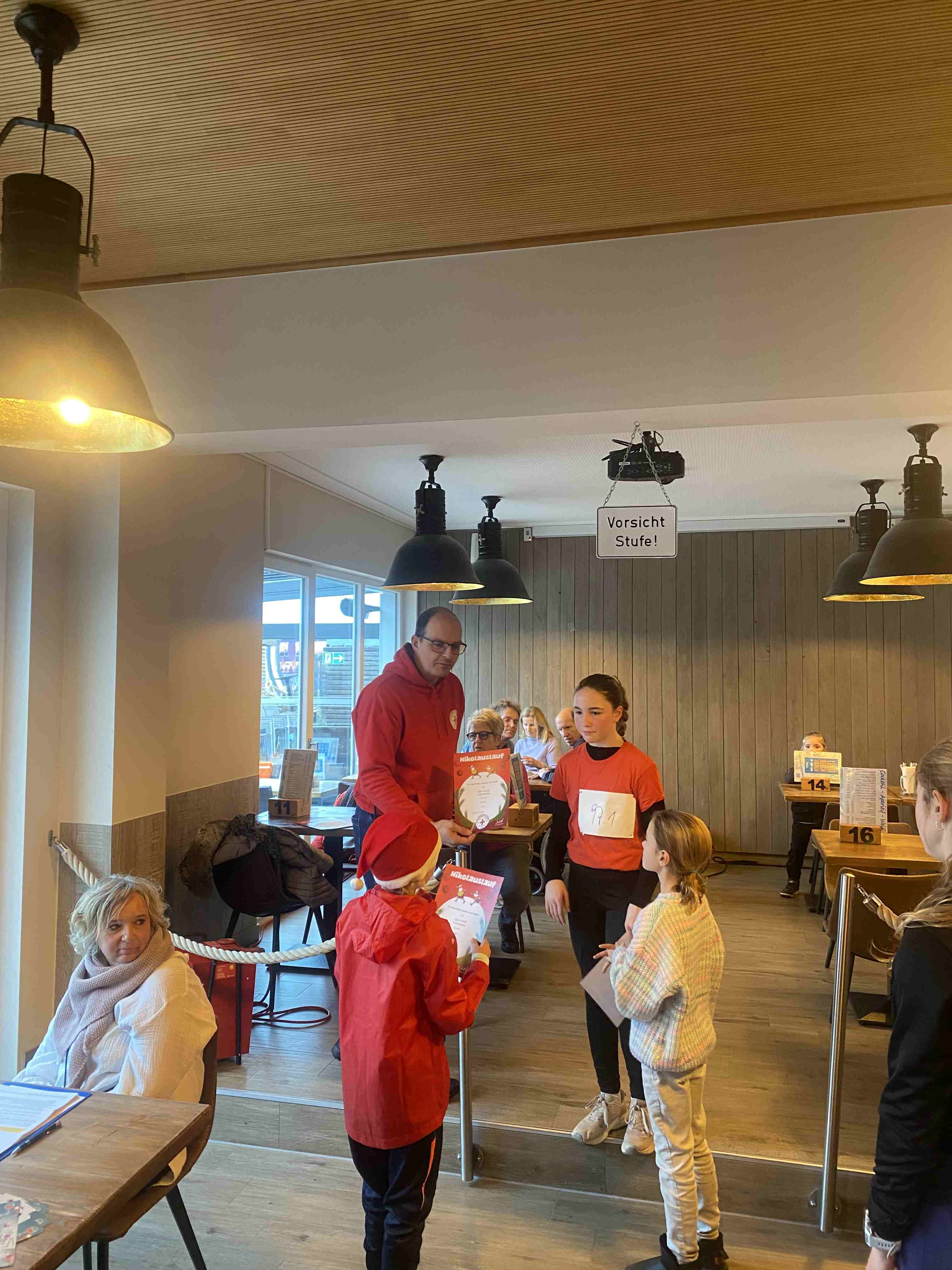 Den sportlichen Höhepunkt und zugleich den traditionellen Abschluss unseres Nikolauslaufs bildete der Hauptlauf über rund 9,5 Kilometer, der über eine kleine und vier große Runden führte. Bei den Frauen setzte sich Hannah Otten in 42:06 Minuten durch. Knapp dahinter folgte Clara Spiegel vom DLC Aachen, die in 42:19 Minuten als Zweite ins Ziel kam – bemerkenswert dabei, dass sie in der Altersklasse der B-Jugend startete. Den dritten Platz belegte Nicole Böwe vom TV Obermaubach, die der Altersklasse W45 angehört und nach 45:41 Minuten die Ziellinie überquerte. Bei den Männern sorgte Markus Seidenfaden (M30) für das sportliche Highlight des Tages und stellte mit 33:04 Minuten einen neuen Streckenrekord auf. Auf Rang zwei folgte sein Vereinskamerad vom LC Euskirchen und Vorjahressieger Ghafar Yusufi (ebenfalls M30), der mit 33:23 Minuten rund eine Minute schneller als im Vorjahr war. Dritter wurde Jan Vernikov, ein weiterer B-Jugendlicher, der die Strecke in 34:54 Minuten bewältigte.