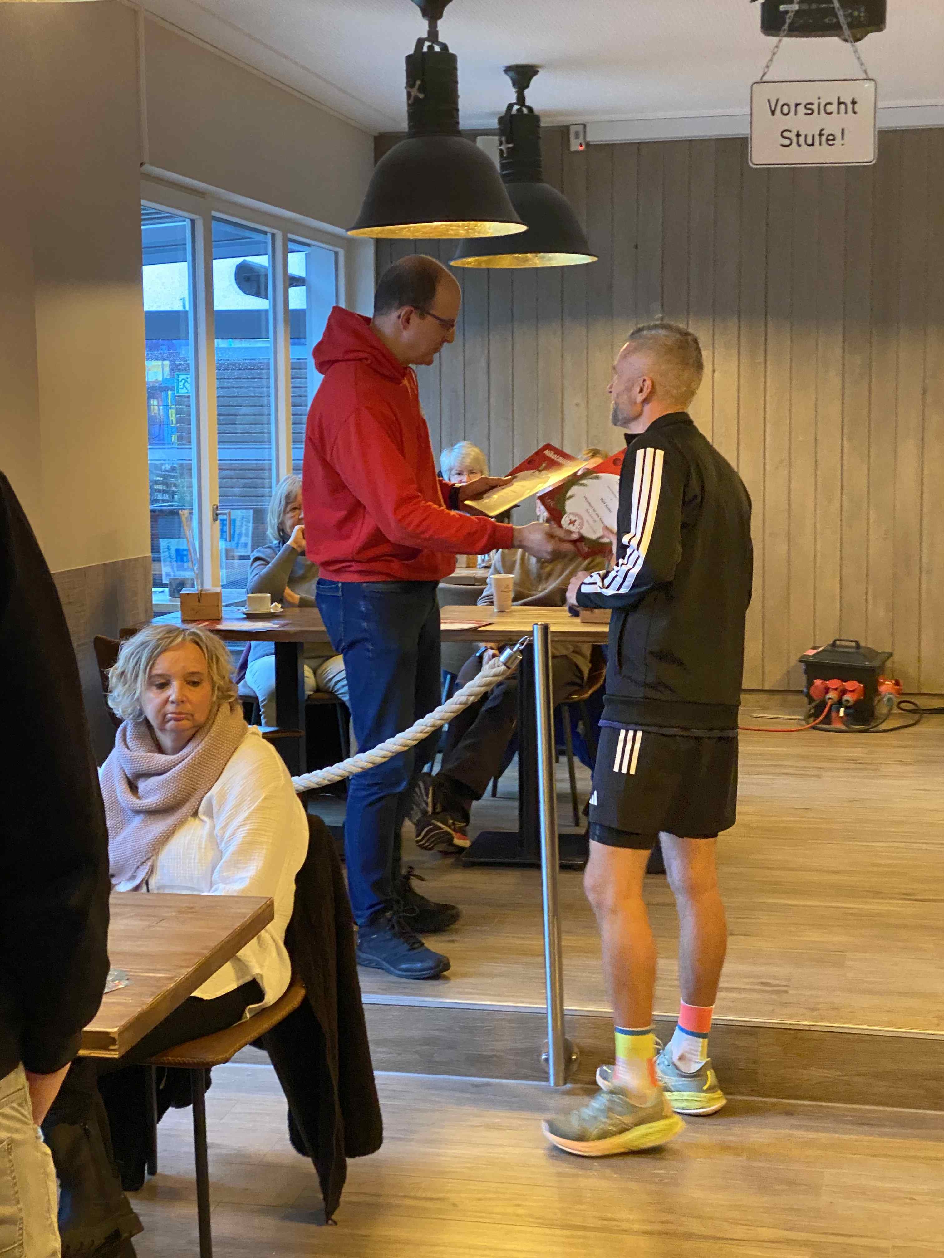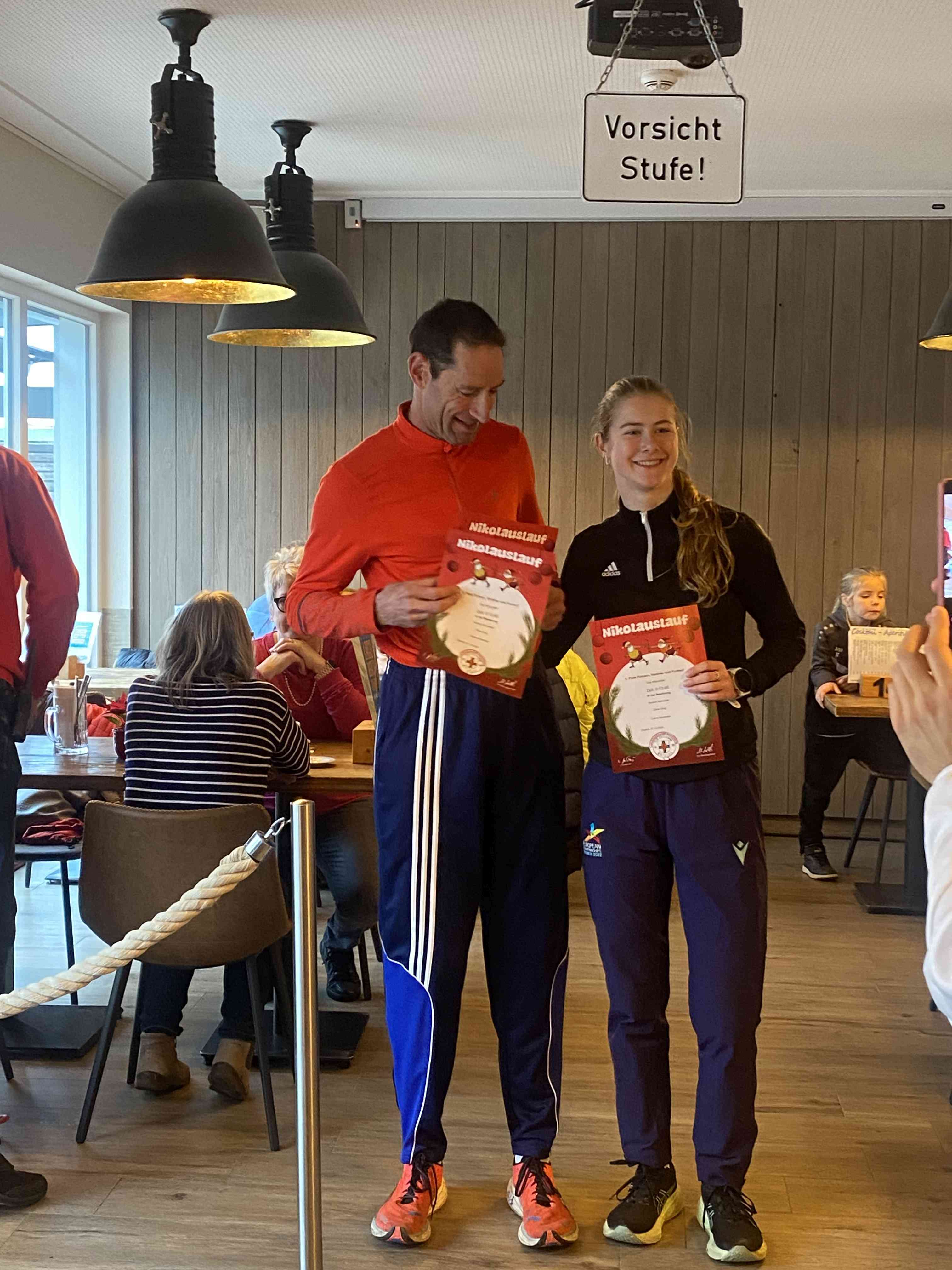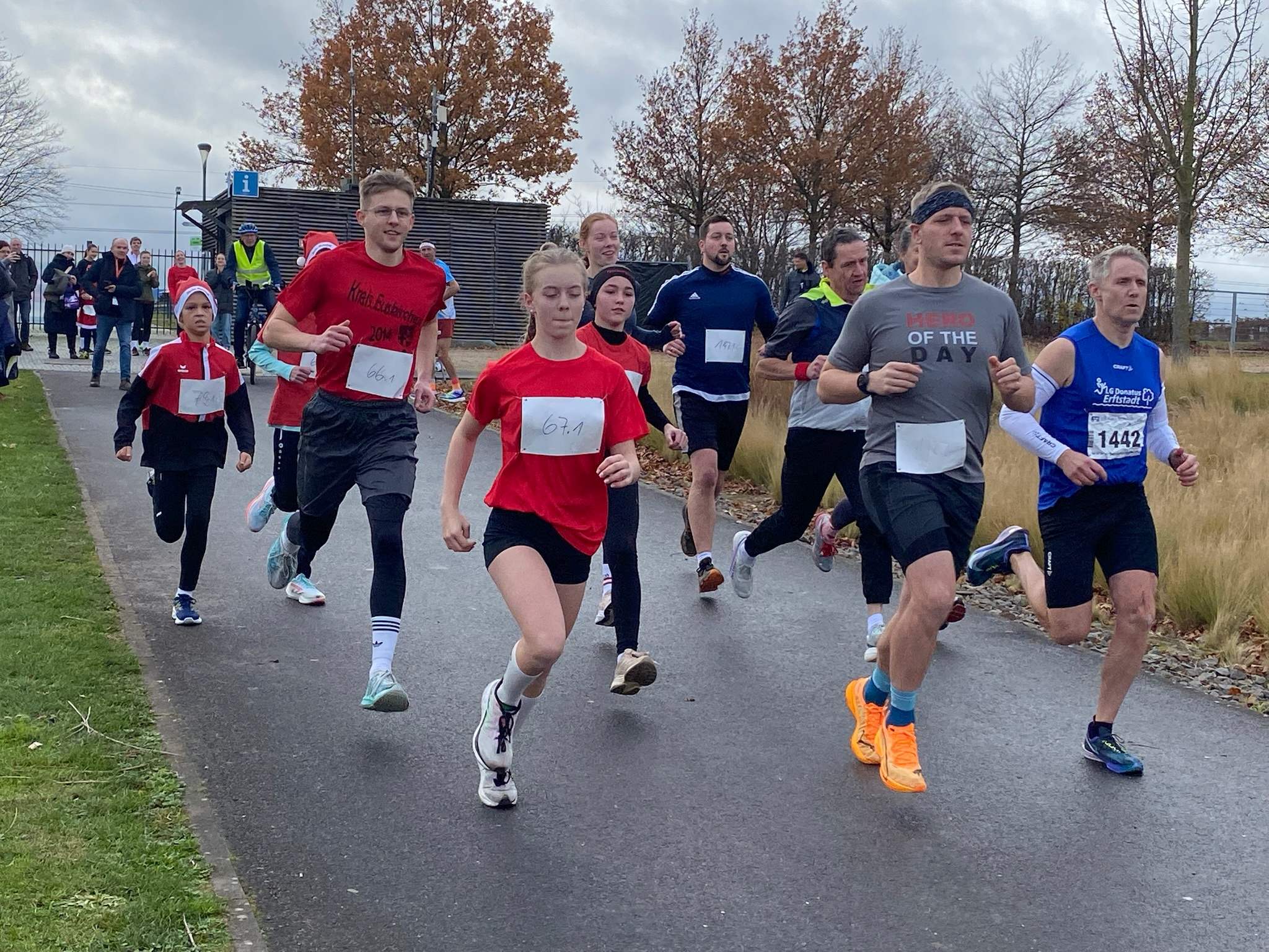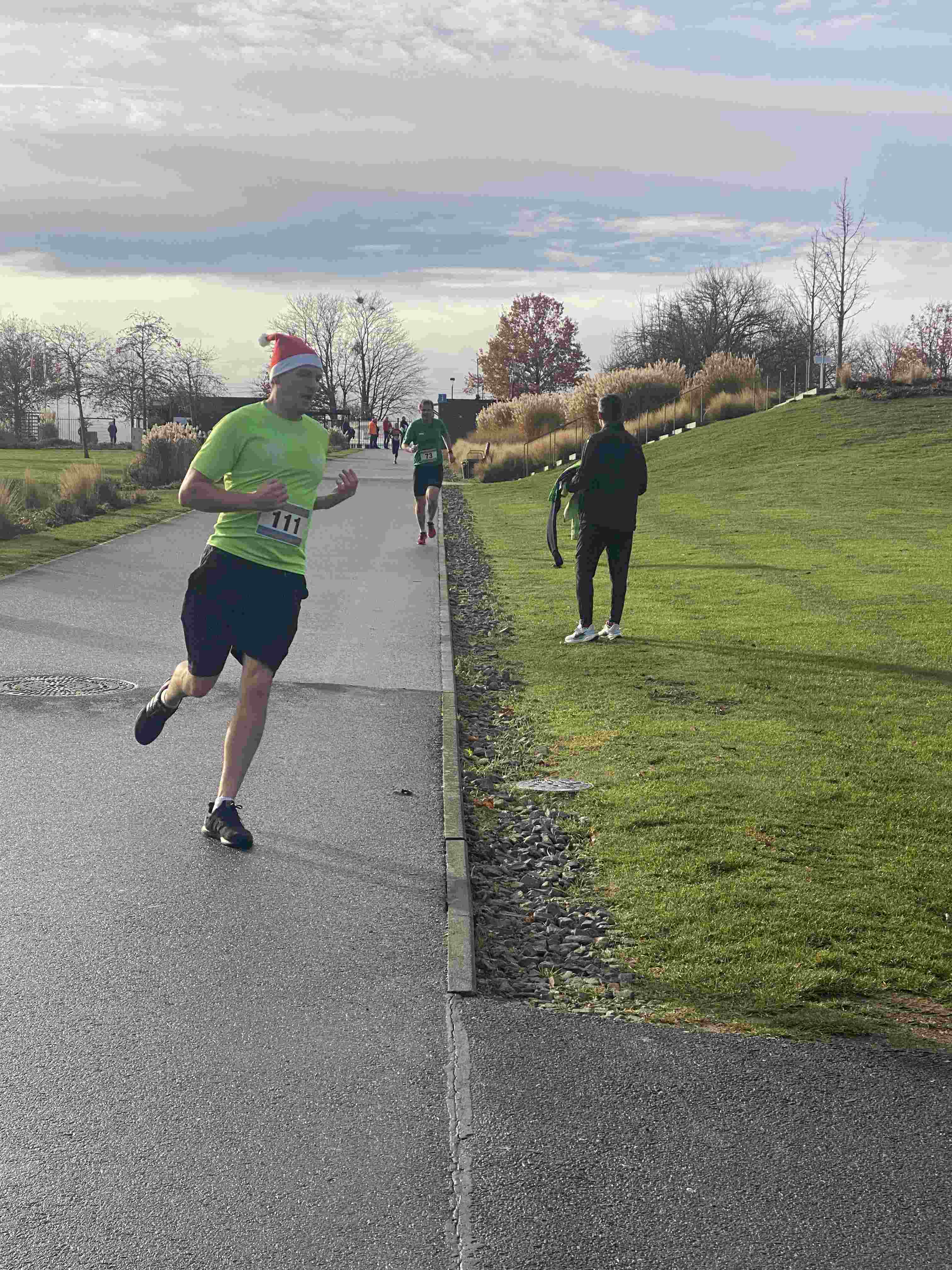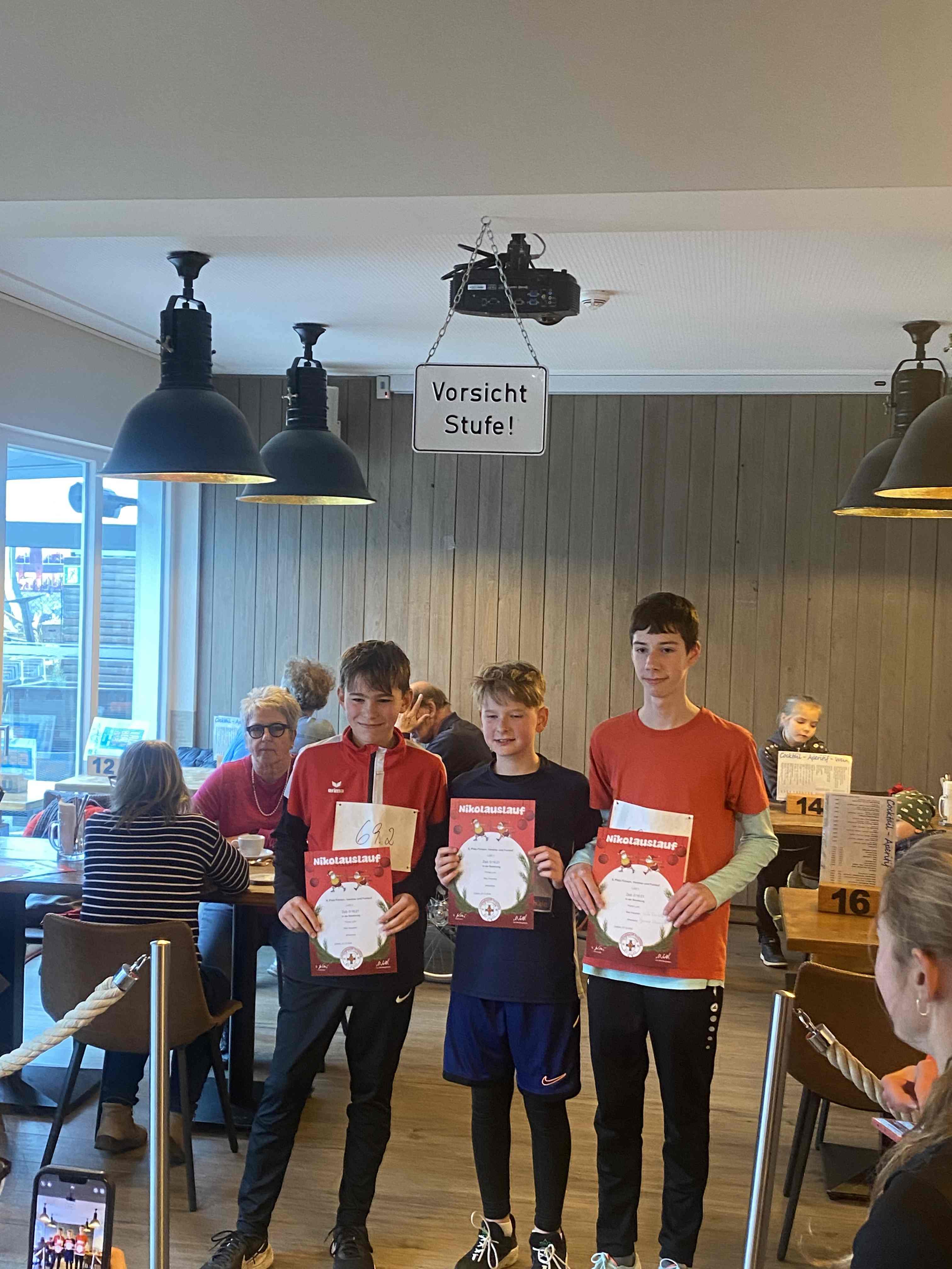 Den sportlichen Höhepunkt und zugleich den traditionellen Abschluss unseres Nikolauslaufs bildete der Hauptlauf über rund 9,5 Kilometer, der über eine kleine und vier große Runden führte. Bei den Frauen setzte sich Hannah Otten in 42:06 Minuten durch. Knapp dahinter folgte Clara Spiegel vom DLC Aachen, die in 42:19 Minuten als Zweite ins Ziel kam – bemerkenswert dabei, dass sie in der Altersklasse der B-Jugend startete. Den dritten Platz belegte Nicole Böwe vom TV Obermaubach, die der Altersklasse W45 angehört und nach 45:41 Minuten die Ziellinie überquerte. Bei den Männern sorgte Markus Seidenfaden (M30) für das sportliche Highlight des Tages und stellte mit 33:04 Minuten einen neuen Streckenrekord auf. Auf Rang zwei folgte sein Vereinskamerad vom LC Euskirchen und Vorjahressieger Ghafar Yusufi (ebenfalls M30), der mit 33:23 Minuten rund eine Minute schneller als im Vorjahr war. Dritter wurde Jan Vernikov, ein weiterer B-Jugendlicher, der die Strecke in 34:54 Minuten bewältigte.