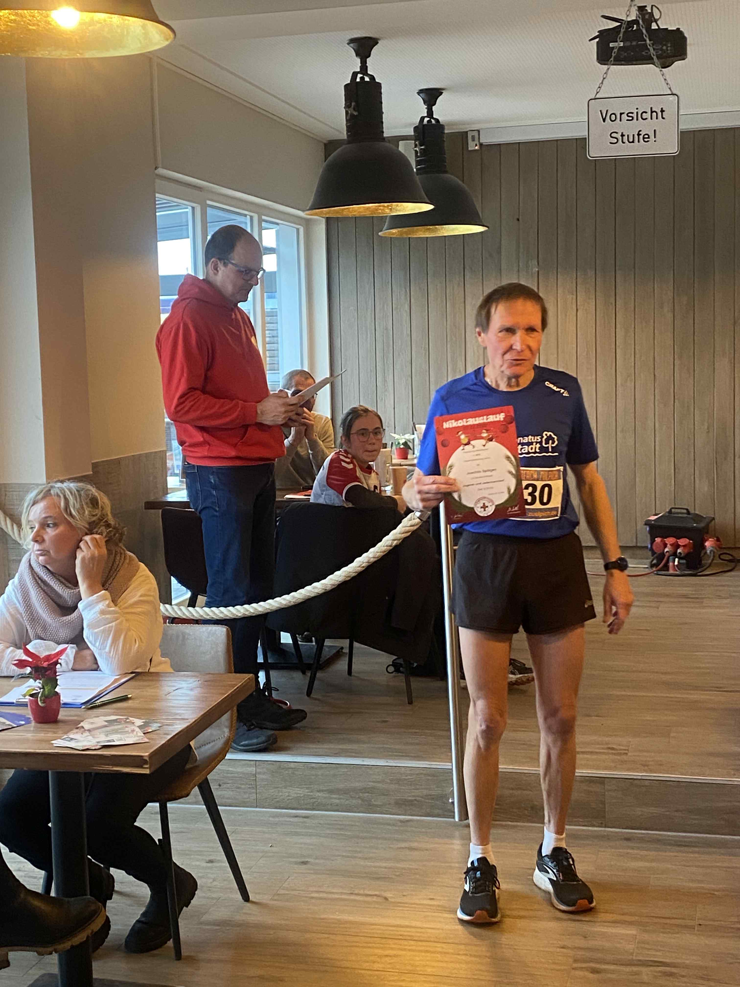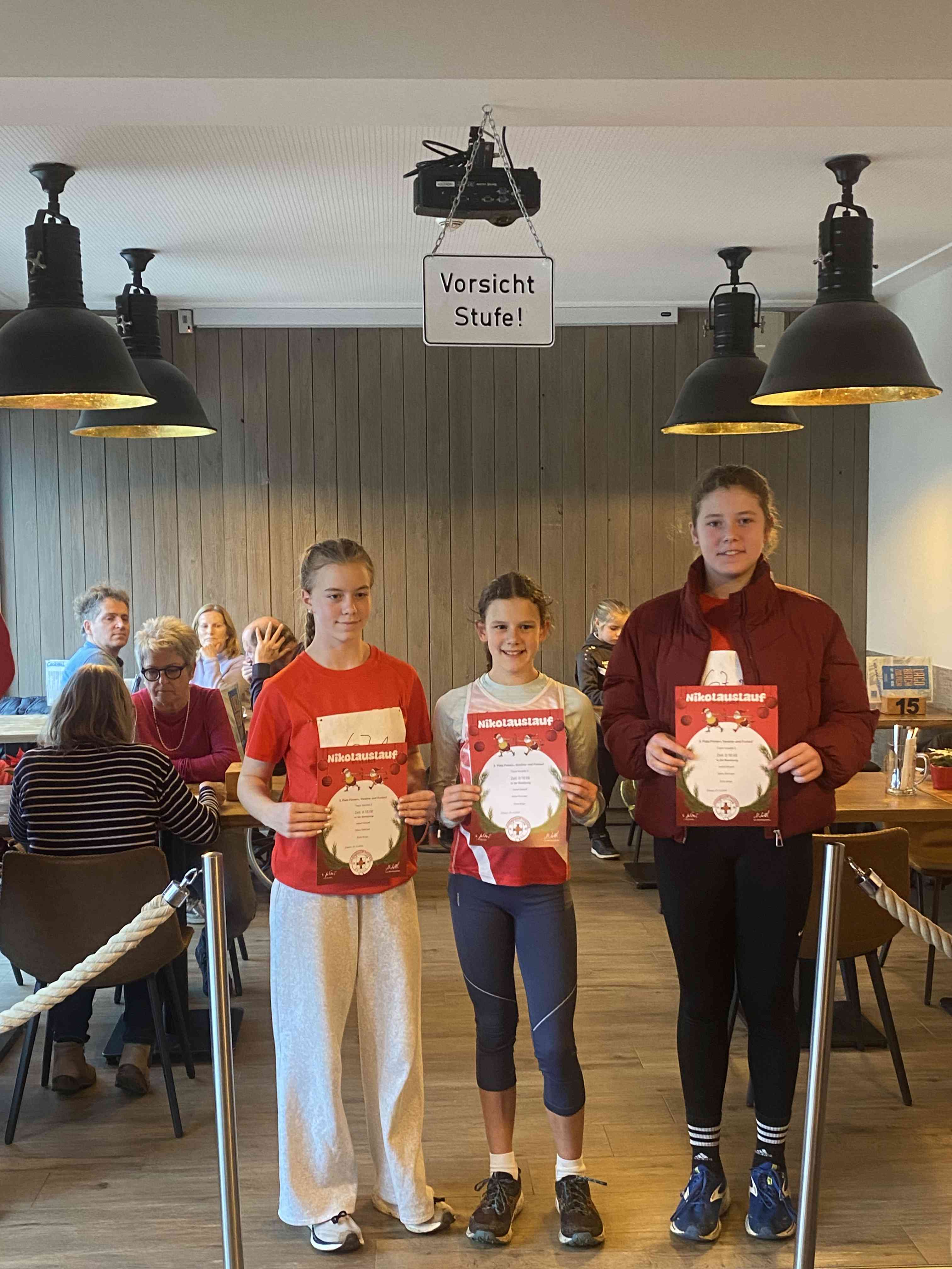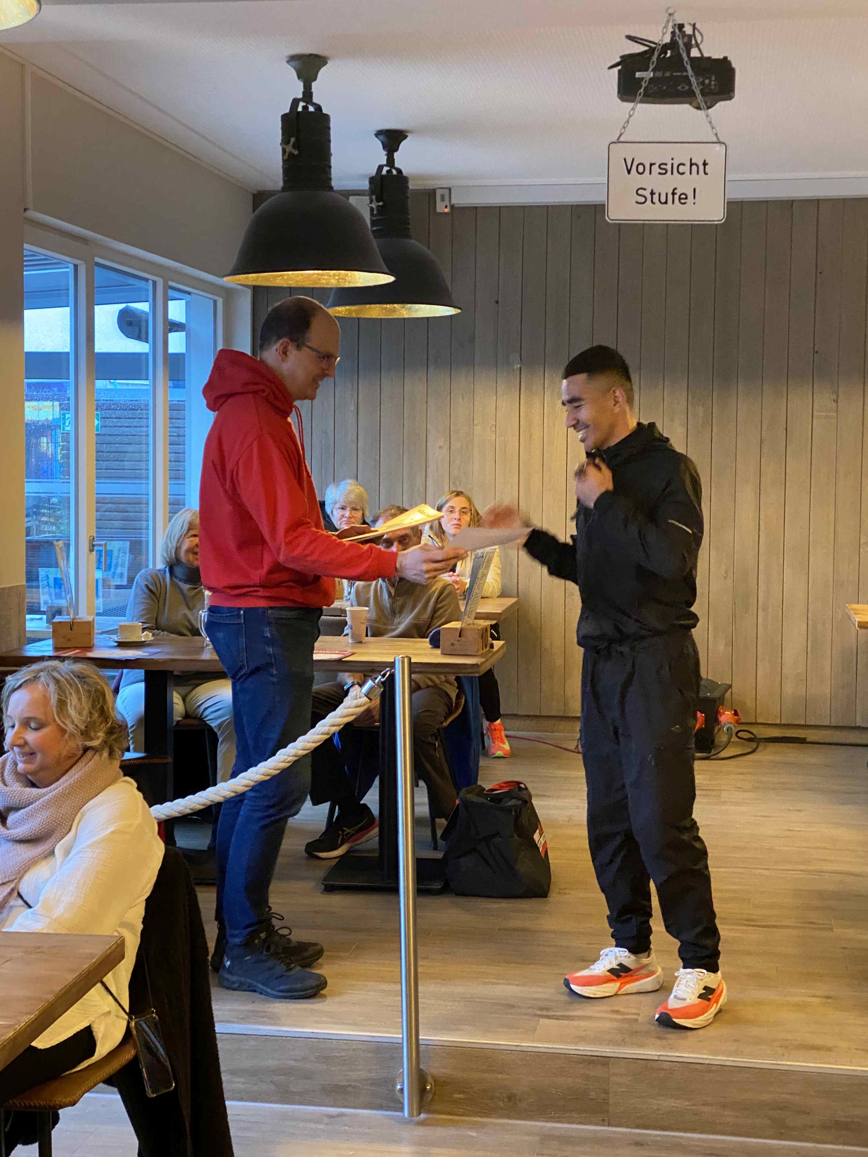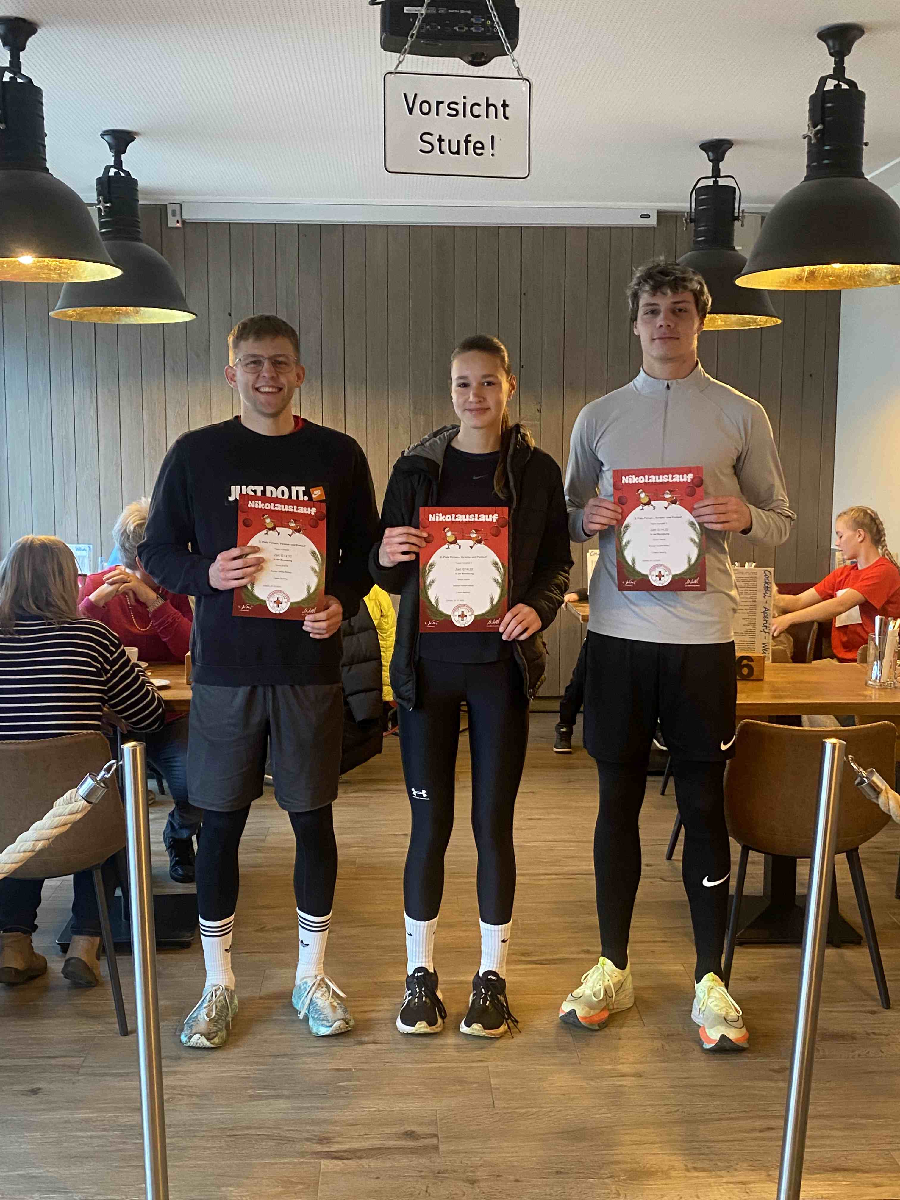Den sportlichen Höhepunkt und zugleich den traditionellen Abschluss unseres Nikolauslaufs bildete der Hauptlauf über rund 9,5 Kilometer, der über eine kleine und vier große Runden führte. Bei den Frauen setzte sich Hannah Otten in 42:06 Minuten durch. Knapp dahinter folgte Clara Spiegel vom DLC Aachen, die in 42:19 Minuten als Zweite ins Ziel kam – bemerkenswert dabei, dass sie in der Altersklasse der B-Jugend startete. Den dritten Platz belegte Nicole Böwe vom TV Obermaubach, die der Altersklasse W45 angehört und nach 45:41 Minuten die Ziellinie überquerte. Bei den Männern sorgte Markus Seidenfaden (M30) für das sportliche Highlight des Tages und stellte mit 33:04 Minuten einen neuen Streckenrekord auf. Auf Rang zwei folgte sein Vereinskamerad vom LC Euskirchen und Vorjahressieger Ghafar Yusufi (ebenfalls M30), der mit 33:23 Minuten rund eine Minute schneller als im Vorjahr war. Dritter wurde Jan Vernikov, ein weiterer B-Jugendlicher, der die Strecke in 34:54 Minuten bewältigte.