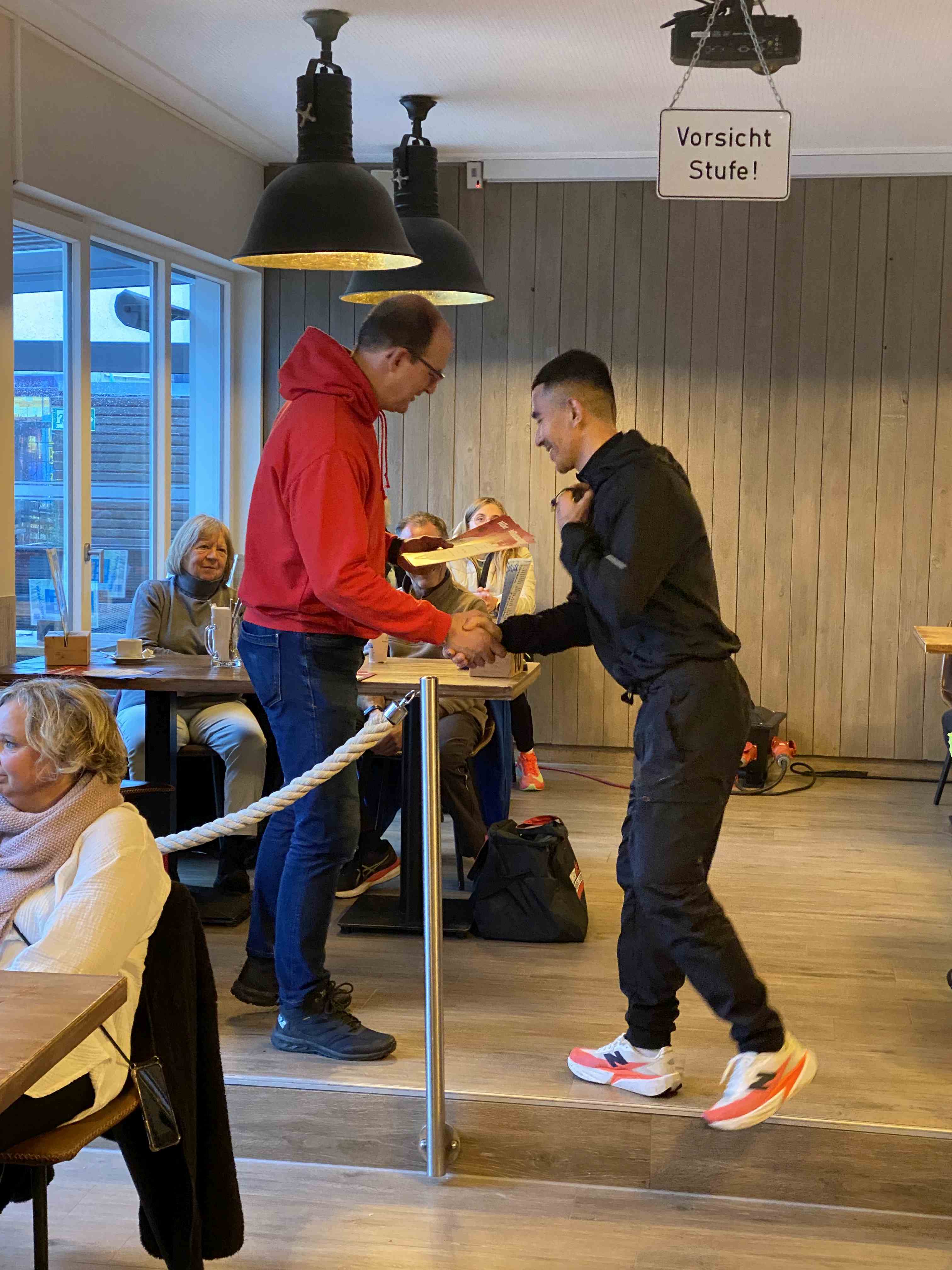 Neben der schönen Laufstrecke durch das Seeparkgelände wussten die Teilnehmerinnen und Teilnehmer auch die hervorragende Infrastruktur des Seeparks sehr zu schätzen – sei es die Möglichkeit, die Sportsachen geschützt und trocken unterzubringen, die Umkleide und Duschmöglichkeiten vor Ort oder die stimmungsvolle Siegerehrung im Warmen im Lago Beach, die bei einem heißen Freigetränk für alle Teilnehmer einen gelungenen Abschluss fand. Da der Eintritt in den Seepark an diesem Tag kostenlos war, kamen auch die jüngsten Fans und Zuschauer voll auf ihre Kosten und waren auf dem Spielplatz oder dem Hüpfkissen bestens unterhalten.