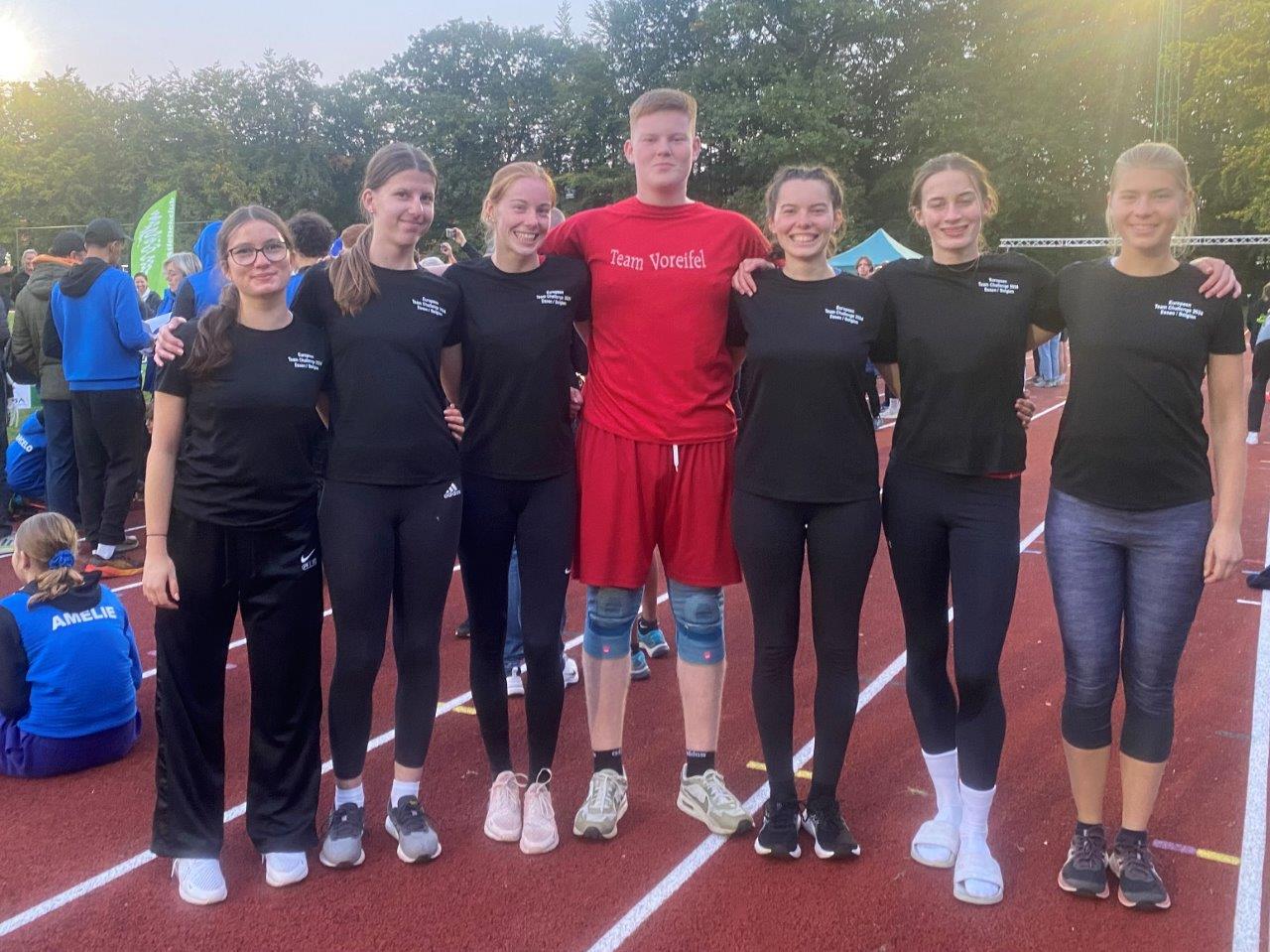 Bei schönem herbstlichem Leichtathletikwetter fanden zum diesjährigen Saisonabschluss wieder die Euregio Team Challenges statt. Bei diesem Sportevent treffen sich grenznahe Vereine zum sportlichen und kulturellen Austausch. So trafen sich am 05.10 im belgischen Städtchen Essen das Team ESAK des Gastgebers, der CA Schifflange aus Luxemburg, der AV D.E.S. Eersel sowie des Club Essence AC, beide aus den Niederlanden und natürlich Team Düren sowie unser Team Voreifel aus Deutschland, um in Mehrkämpfen ihre jeweils Besten zu ermitteln und auch in der Mannschaftswertung das erfolgreichste Team zu küren.