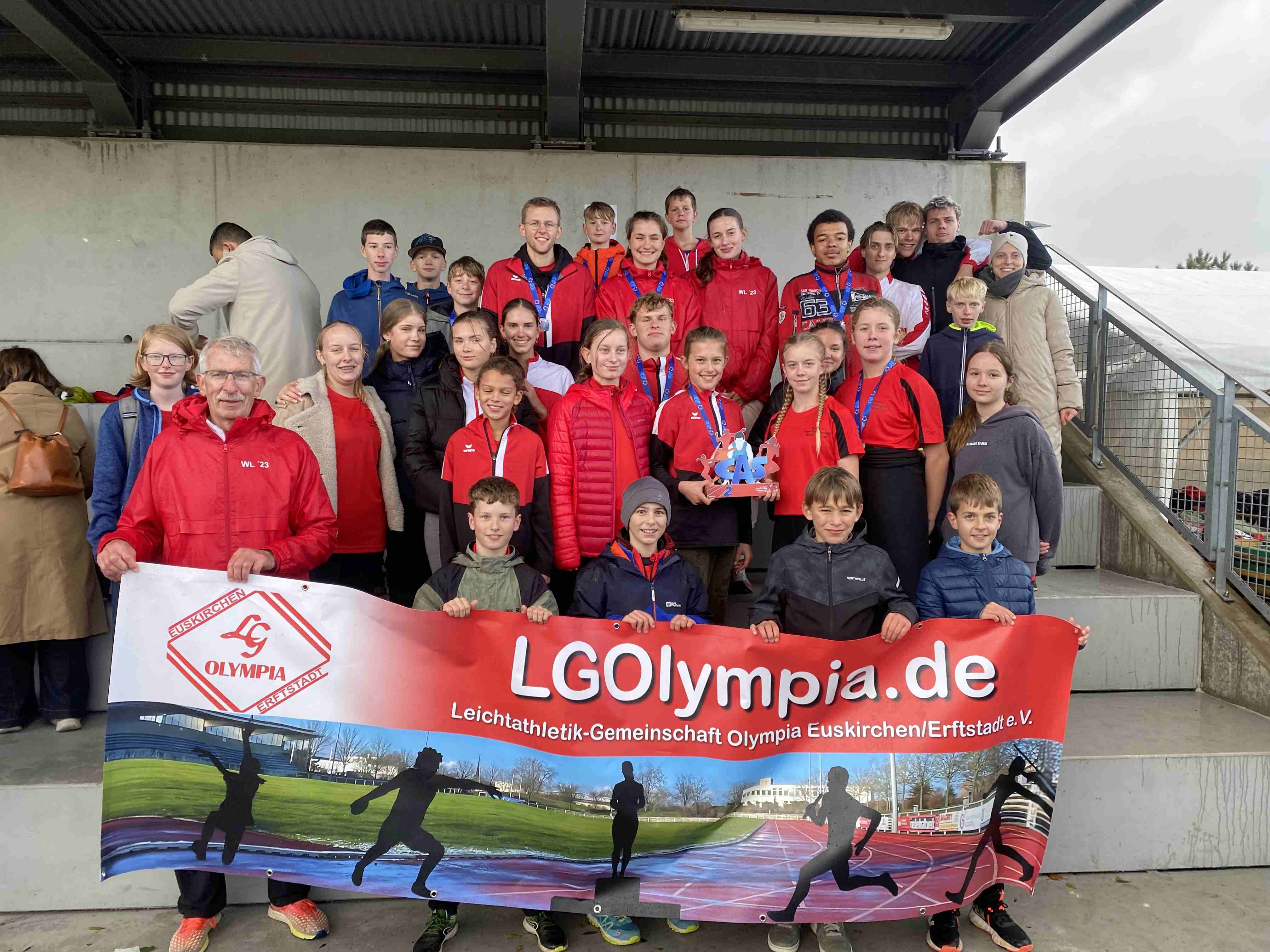 Zum diesjährigen Saisonabschluss bestritten unsere jugendlichen Athleten wieder die Euregio Team Challenge. Bei diesem Sportevent treffen sich grenznahe Vereine zum sportlichen und kulturellen Austausch. So trafen sich am 04.10 im luxemburgischen Schifflange das Team des Gastgebers, der CA Schifflange aus Luxemburg, das Team ESAK aus Belgien, das französiche Team PHAR Longwy, der AV Reusel 69 aus den Niederlanden und vier deutsche Mannschaften aus Düren, Obermaubach, Bitburg sowie unser Team Voreifel, um in Mehrkämpfen ihre jeweils Besten zu ermitteln und auch in der Mannschaftswertung das erfolgreichste Team zu küren.