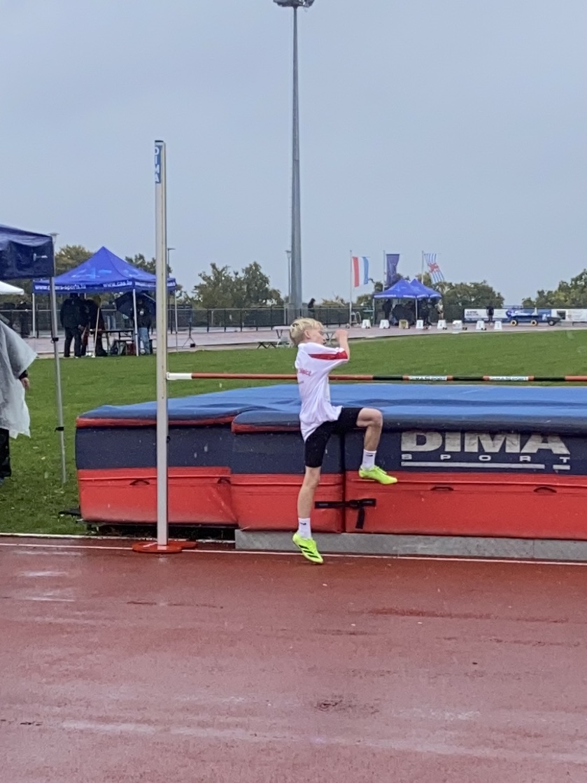 Für Lennox Kremer begann der Vierkampf mit einem hervorragenden Ballwurf auf 42 Meter – ein perfekter Auftakt. Auch über 50 Meter zeigte er sich in Bestform und sprintete in 8,06 Sekunden die schnellste Zeit seiner Altersklasse. Nach dem 800-Meter-Lauf in 3:12,63 Minuten musste er seine Führung allerdings knapp abgeben und lag vor der letzten Disziplin mit drei Punkten Rückstand auf Rang zwei. Der abschließende Hochsprung wurde dann zu einem echten Krimi. Sein direkter Konkurrent tat sich von Beginn an schwer und überwand die Höhen 1,15 m, 1,18 m und 1,21 m jeweils erst im dritten Versuch. Die 1,24 m meisterte dieser jedoch im ersten Versuch und legte nun auf einmal vor und überwand dann auch noch die Höhe von 1,27 Metern. Damit war klar: Die Entscheidung um den Gesamtsieg würde bei 1,30 Metern fallen – einer Höhe, die zugleich persönliche Bestleistung für Lennox bedeutet hätte. Und tatsächlich: Lennox behielt die Nerven, übersprang als einziger Athlet seiner Altersklasse die 1,30 Meter und sicherte sich damit verdient den Gesamtsieg im Vierkampf mit 1.339 Punkten.