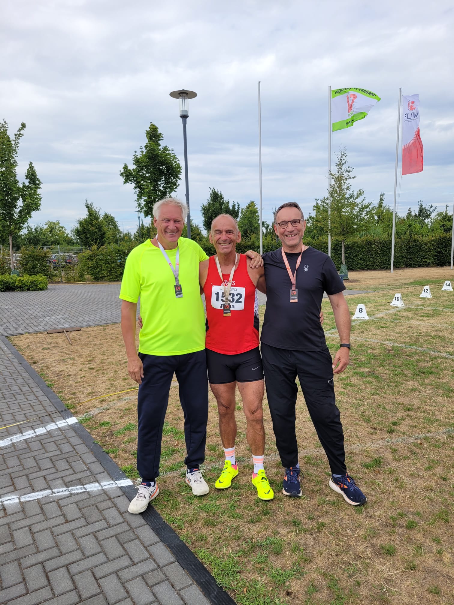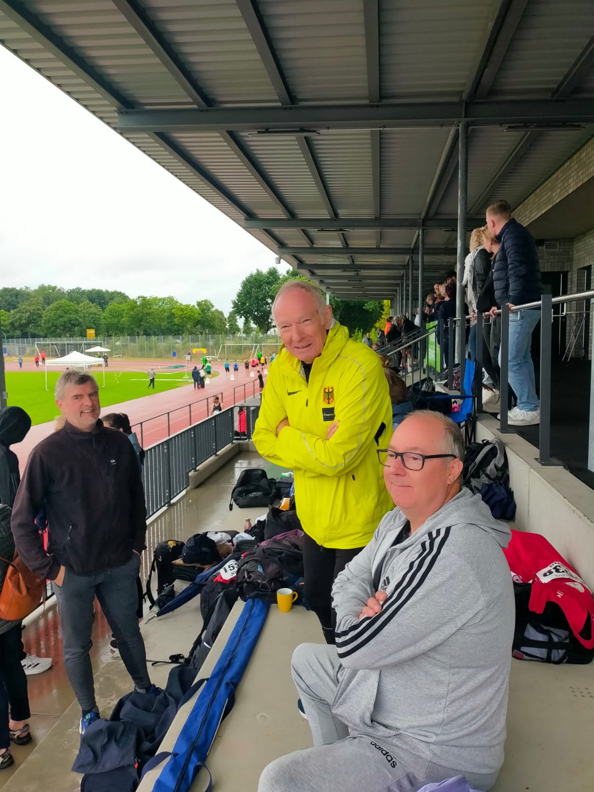 Sehr erfreulich waren auch die Leistungen unseres Vereinsvorsitzenden Dr. Gerd-Rüdiger Wasmuth. In der Altersklasse M80 überzeugte er mit zwei persönlichen Bestleistungen: Über 100 Meter lief er in 16,74 Sekunden auf einen hervorragenden zweiten Platz. Über 200 Meter gelang ihm sogar der Sprung ganz nach oben aufs Treppchen – mit 36,33 Sekunden sicherte er sich verdient die Goldmedaille und den Nordrhein-Titel.