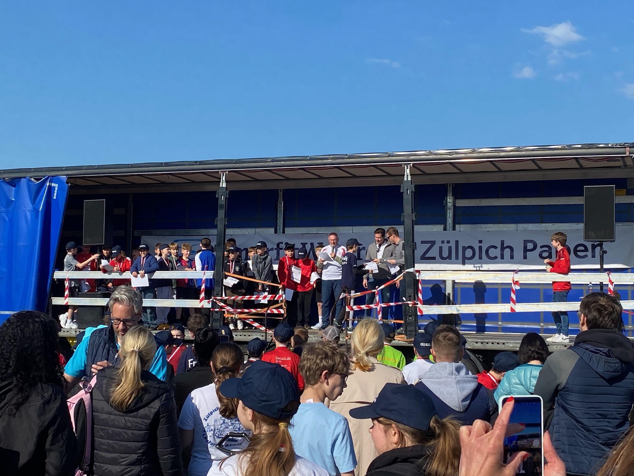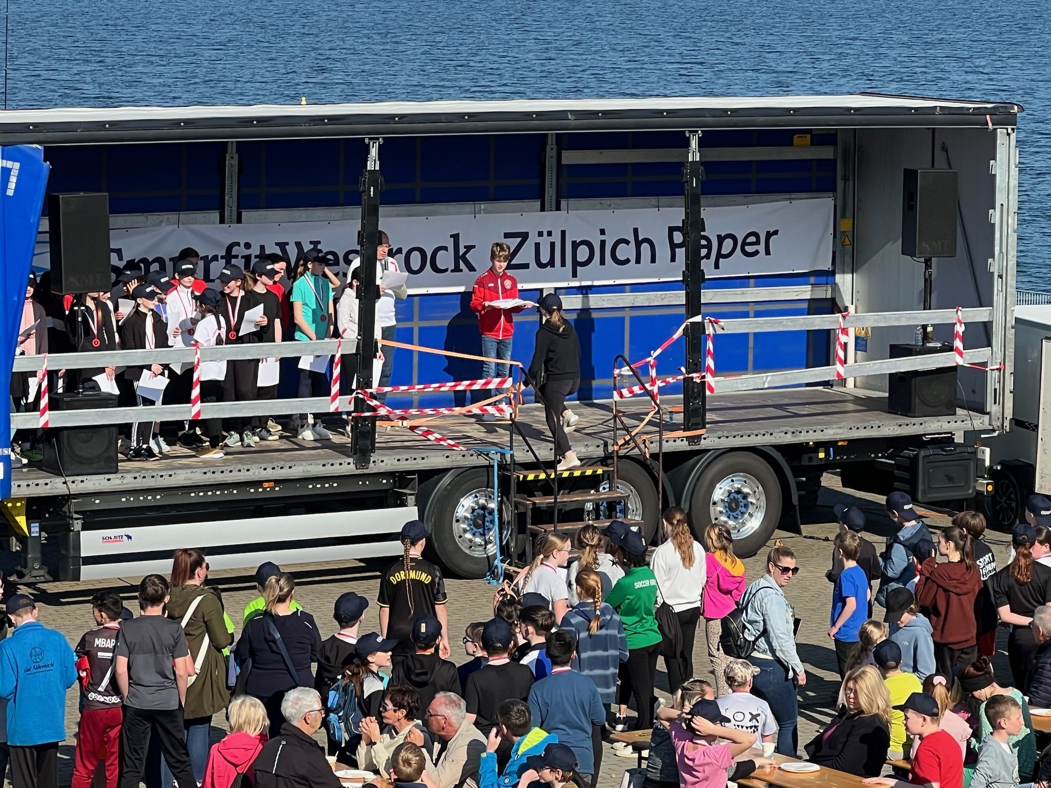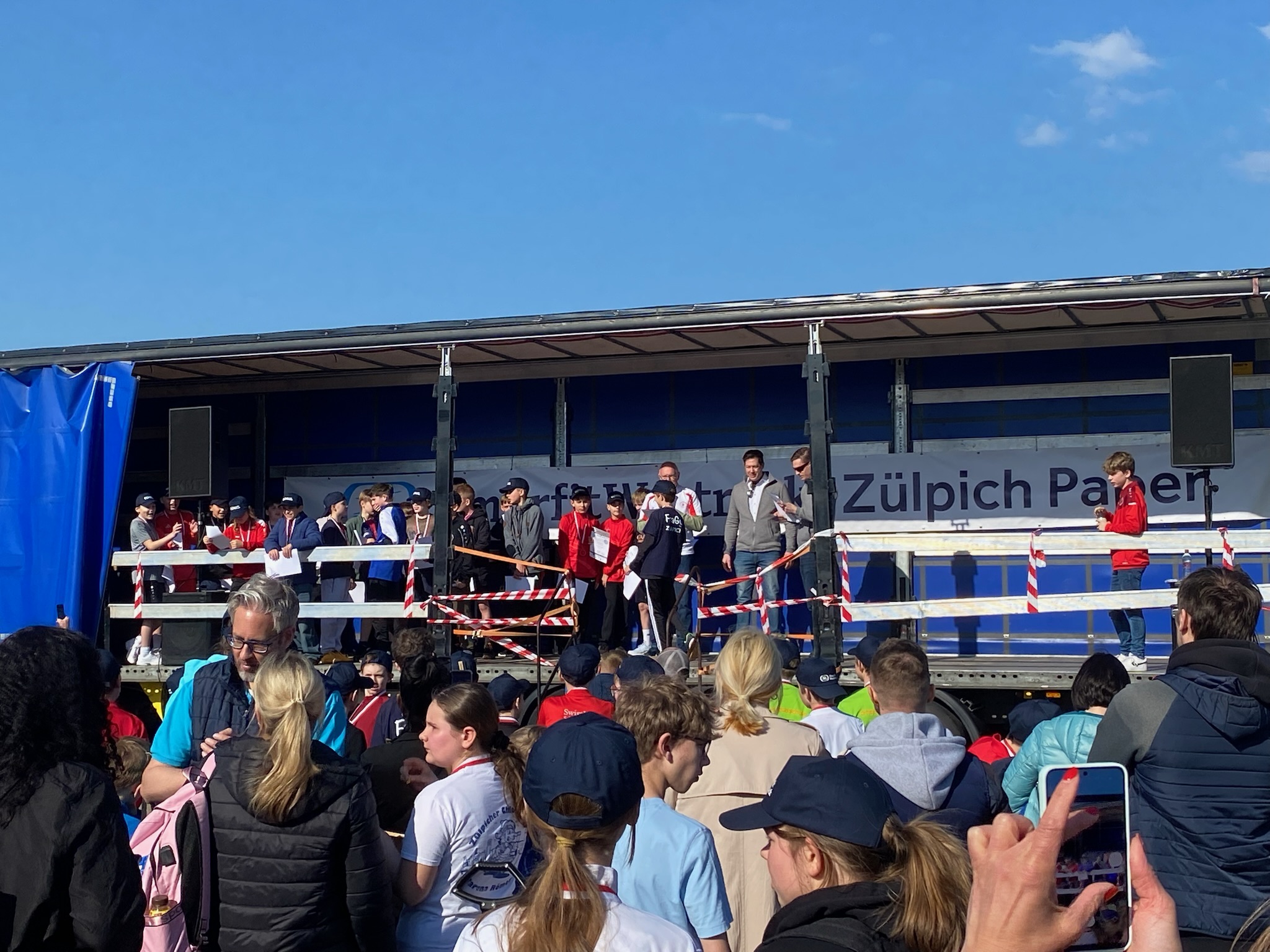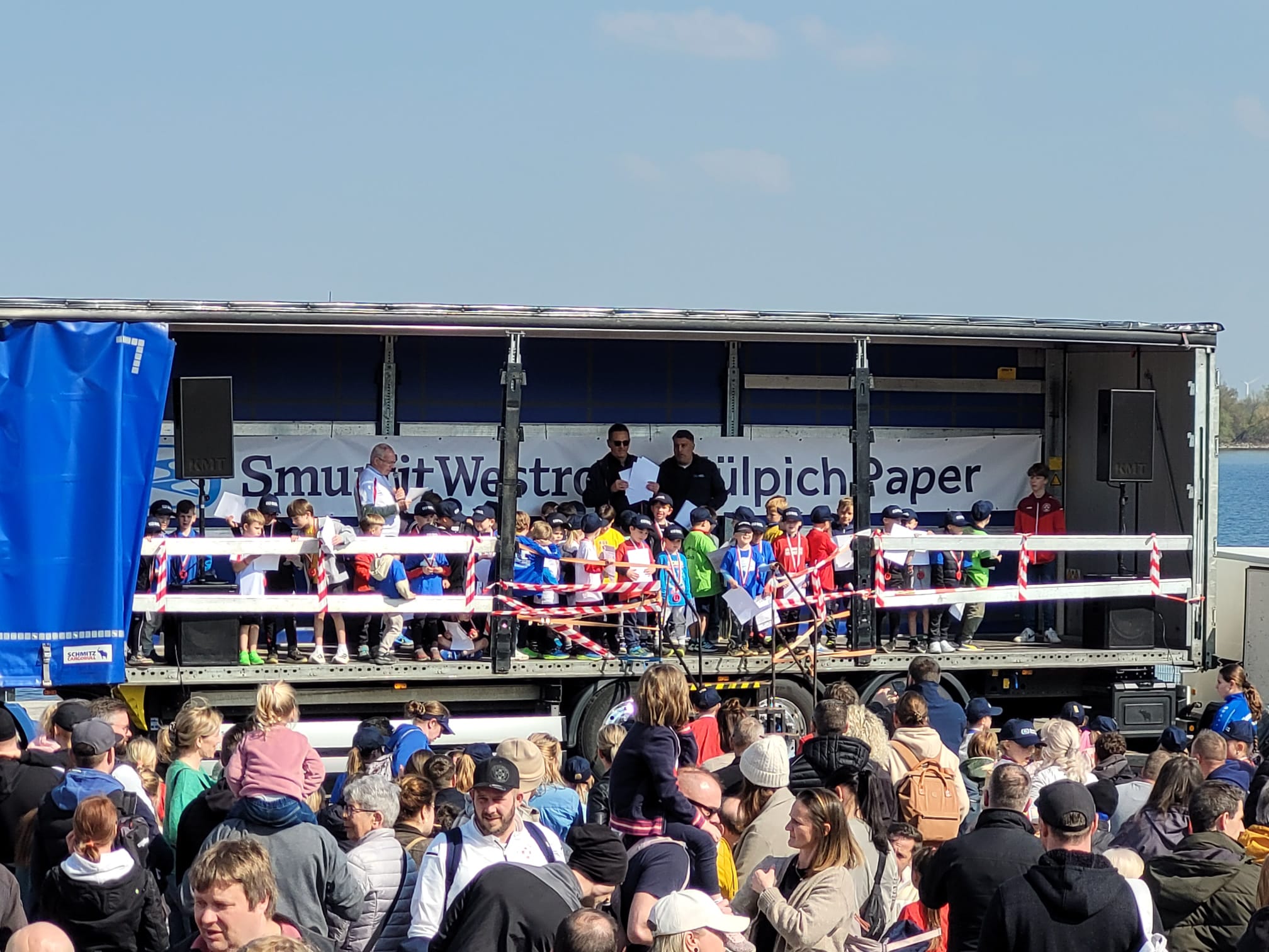 Unser besonderer Dank gilt unserem Hauptsponsor Smurfit Westrock Zülpich Paper. Ebenso schätzen wir die wertvolle Unterstützung durch die Seepark Zülpich GmbH, das Lago Beach Zülpich, die Dost Hörgeräte Zülpich sowie Kreissparkasse Euskirchen sehr. Ein herzliches Dankeschön geht auch an die Reinold Transporte GbR für die Bereitstellung des LKWs und an die Launhardt GmbH, die als Zülpicher Spezialist für 3D-Druck die Finisher-Medaillen bereitgestellt hat. Ein großer Dank gilt darüber hinaus der Stadt Zülpich, insbesondere den Bereichen Wirtschaftsförderung und Ordnungsamt, für die gute Zusammenarbeit. Ebenso bedanken wir uns beim Deutschen Roten Kreuz (DRK), bei den vielen freiwilligen Helferinnen und Helfern sowie bei allen, die mit Kuchenspenden zum Gelingen beigetragen haben. Ganz besonders freuen wir uns über die engagierte Teilnahme der Zülpicher Schulen und Kindertagesstätten: Rund 920 Kinder und Jugendliche im Alter von 3 bis 15 Jahren konnten wir so auf die Strecke schicken und sicher ins Ziel begleiten.