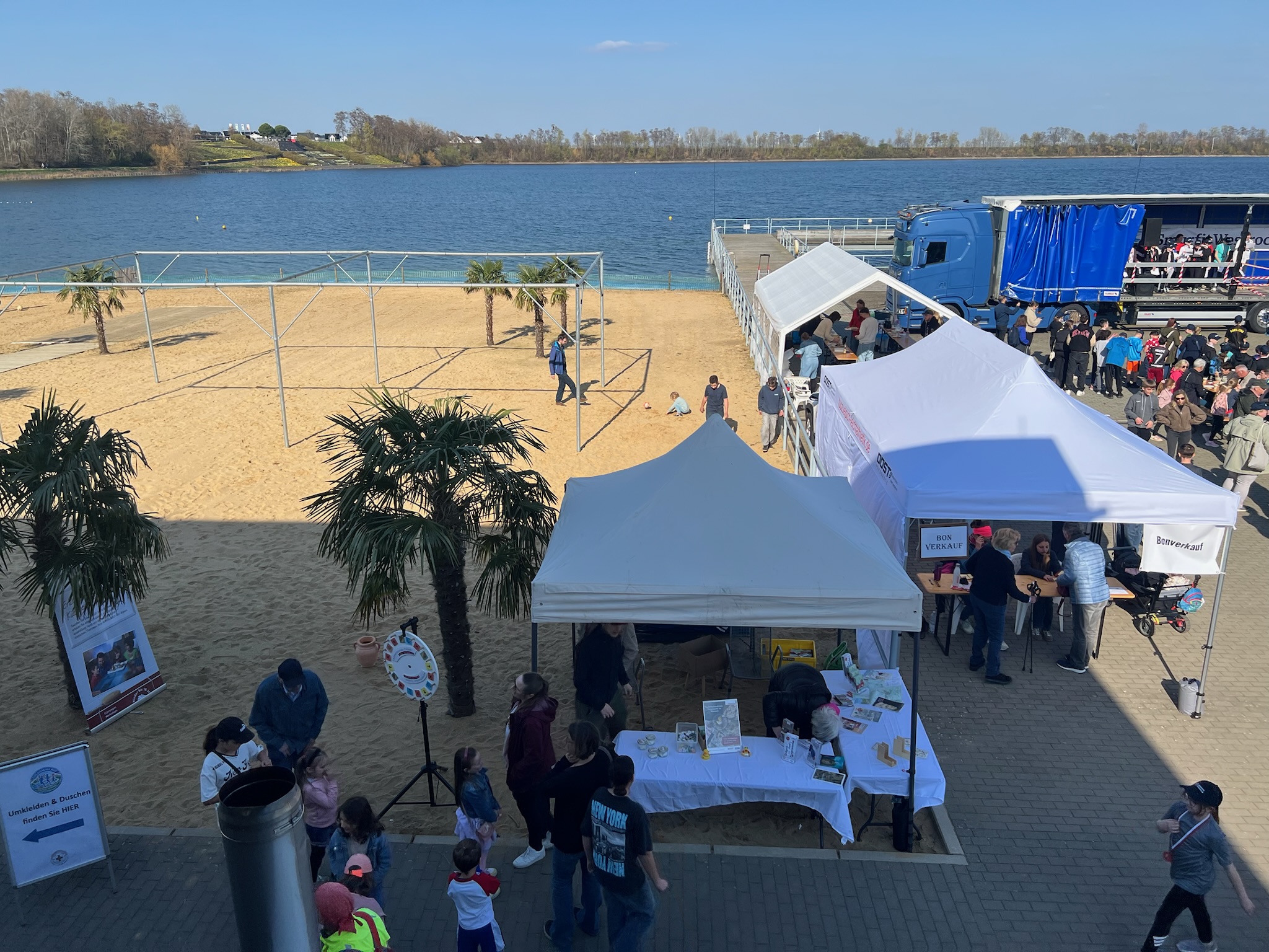 Abgerundet wurde das sportliche Programm durch den parallel stattfindenden Tag der offenen Tür im Seepark, der auch für Familien und Besucher einiges zu bieten hatte. So konnten sich Kinder auf dem Hüpfkissen, dem Kletterberg, den Hüpfburgen und dem Flying Fox austoben, während ein liebevoll gestaltetes Kinderschminken für zusätzliche Freude bei den jüngsten Gästen sorgte. Währenddessen genossen die Erwachsenen die besondere Atmosphäre des Parks mit Blick auf den Zülpicher See. Insgesamt zog es an diesem Tag rund 6.600 Gäste in den Seepark, darunter knapp 1.200 Läuferinnen und Läufer.
