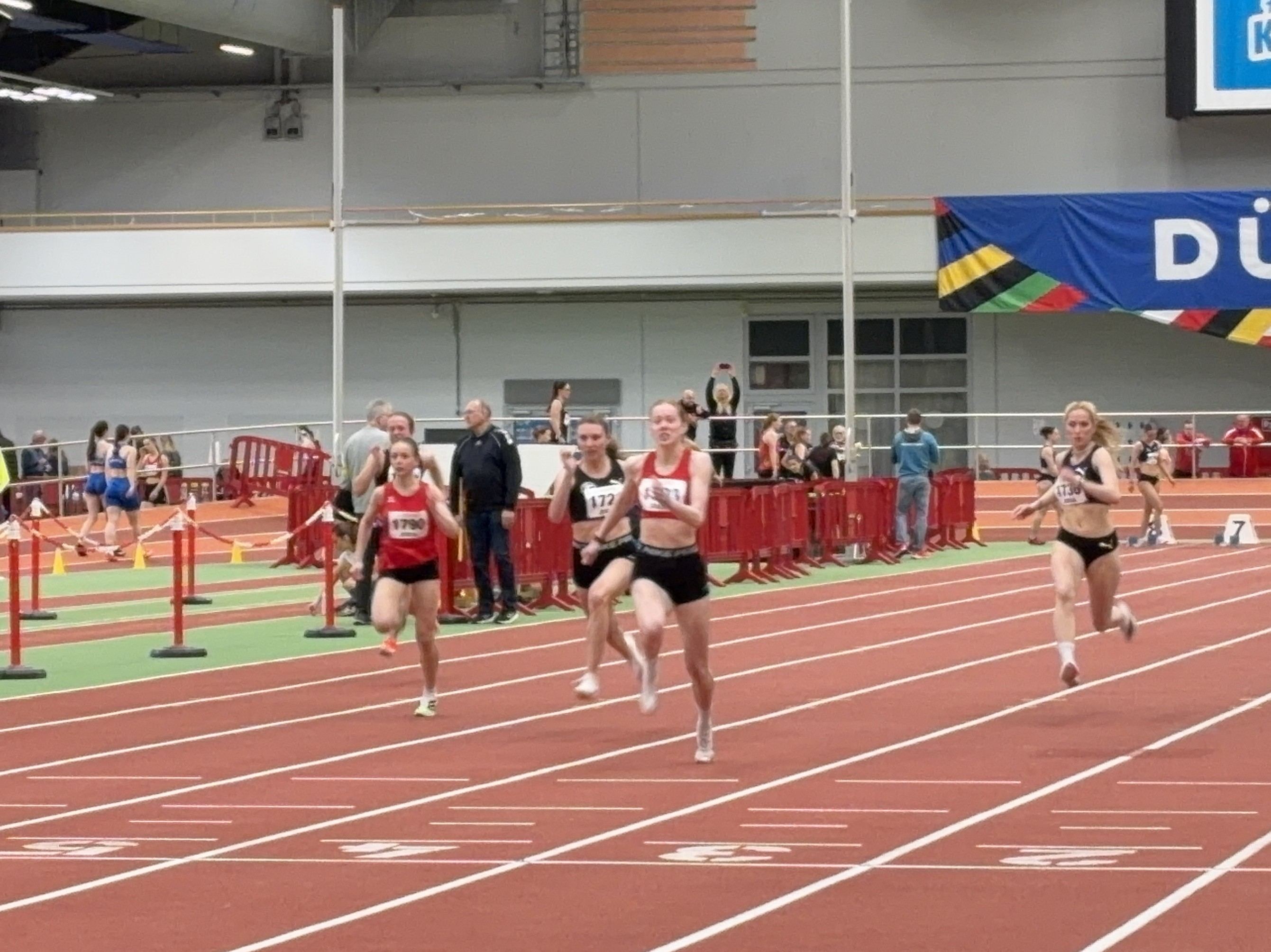 Auch Bibiane zeigte über die 60 Meter eine beeindruckende Leistung. Sie siegte im Vorlauf in persönlicher Bestleistung von 7,87 Sekunden und konnte diesen Erfolg im Finale noch steigern: Mit großartigen 7,80 Sekunden, die nicht nur persönliche Bestleistung, sondern auch neuen Vereinsrekord bedeuten, sicherte sie sich den Titel der Regionsmeisterin im Sprint. Bibiane trat zudem über die 200 Meter Distanz an und lieferte sich im schnellsten Rennen ein spannendes Kopf-an-Kopf-Duell mit einer Athletin aus Aachen. Am Ende belegte sie in einer guten Zeit von 25,22 Sekunden den zweiten Platz.