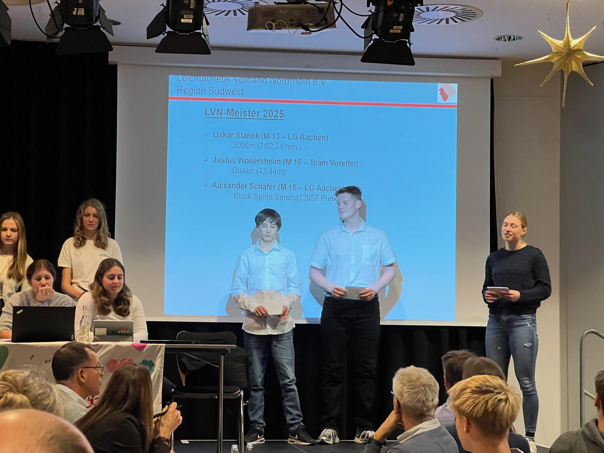 Zum Abschluss der Leichtathletik-Saison 2025 kamen am 1. Dezember die Vereine der Region Südwest in Eschweiler zur jährlichen Regionsversammlung zusammen. Traditionell wurden dabei die erfolgreichsten Nachwuchsathletinnen und -athleten aus den Kreisen Aachen, Düren, Euskirchen und Heinsberg geehrt.